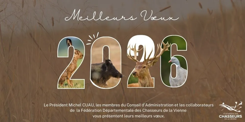 Le Président Michel CUAU, les membres du Conseil d’Administration ainsi que l’ensemble des collaborateurs de la Fédération Départementale des Chasseurs de la Vienne vous présentent leurs meilleurs vœux à l’occasion de cette nouvelle année.