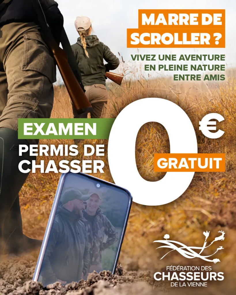 - ATTENTION : le remboursement s’applique uniquement lors de la première validation effectuée auprès de la Fédération des Chasseurs de la Vienne, et seulement pendant la première année.
